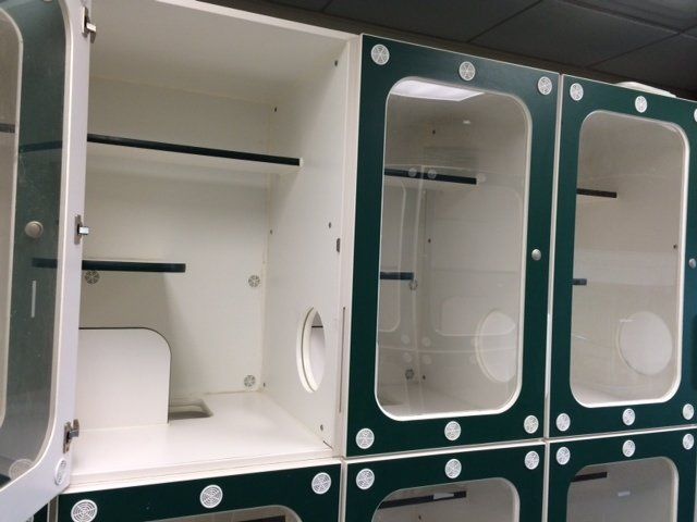 - Separate, private area for felines with multi-level condos